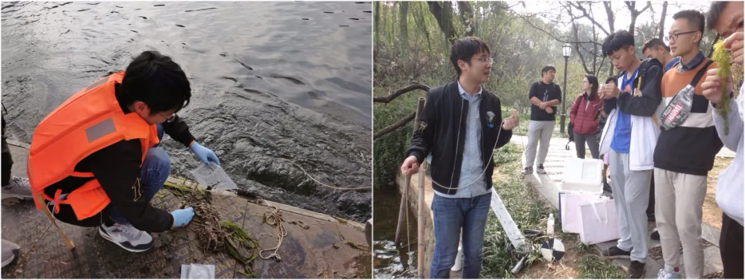 會議結(jié)束,由實驗室負責人唐坦先生帶領同學們到莫愁湖景區(qū),進行實地勘測水樣操作演練,進一步加強理論知識,為同學們未來走向職場開啟新篇章。