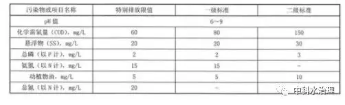 農(nóng)村生活污水處理設(shè)施水污染物排放限值分別執(zhí)行特別排放限值、一級標準、二級標準: