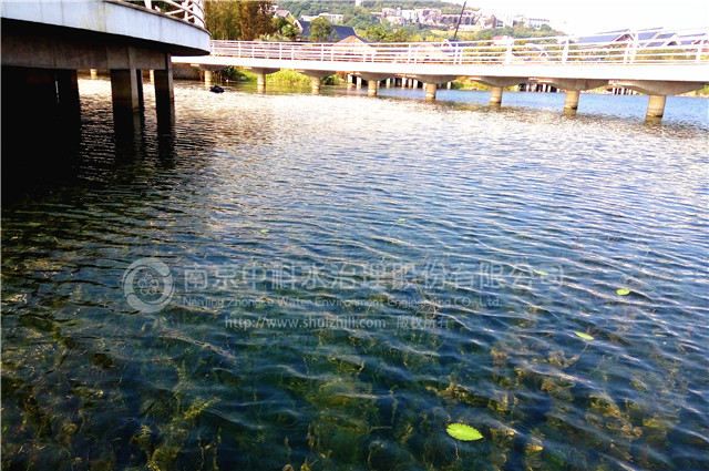 南北水塘水生態(tài)修復(fù)示范項目由南京中科水治理股份有限公司進(jìn)行設(shè)計施工一體化工程,工程總面積22.8萬㎡,平均水深2.2m。南北水塘在修復(fù)前為典型的富營養(yǎng)化水體,清水型生態(tài)系統(tǒng)構(gòu)建技術(shù)工程施工后,主要水質(zhì)將達(dá)到地表水環(huán)境治理標(biāo)準(zhǔn)GB3838-2002 Ⅳ類以上,透明度達(dá)到1.5m及以上,且每年不少于300日。