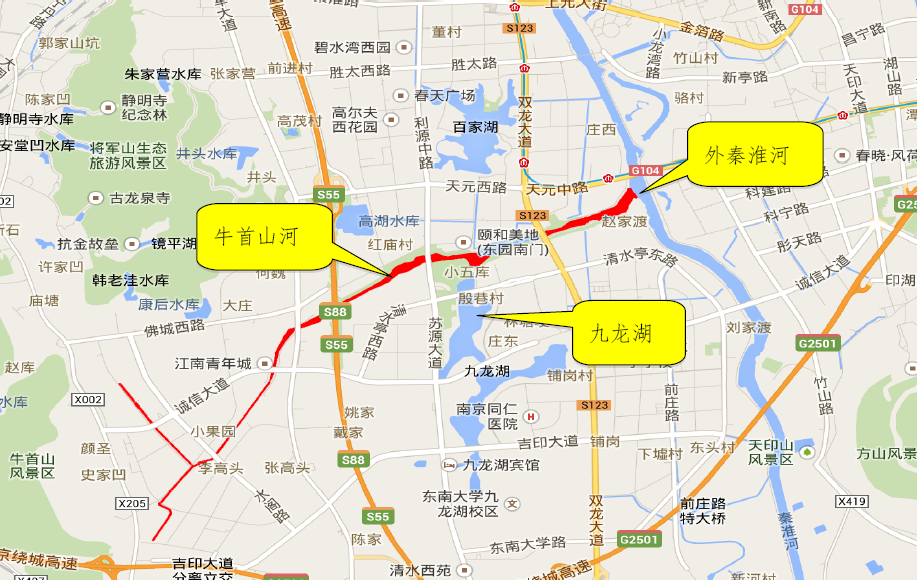 牛首山河流向及位置圖