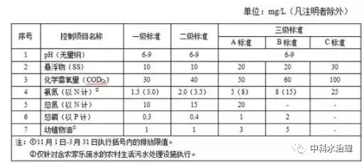 自標準實施之日起至 2020 年 12 月 31 日止,現(xiàn)有農(nóng)村生活污水處理設(shè)施按污水排放去向執(zhí)行表 1 規(guī)定的排放濃度限值。