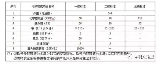 規(guī)模小于 2m3 /d(不含)的新建農(nóng)村生活污水處理設(shè)施,水污染物排放限值執(zhí)行下表中三級標準。